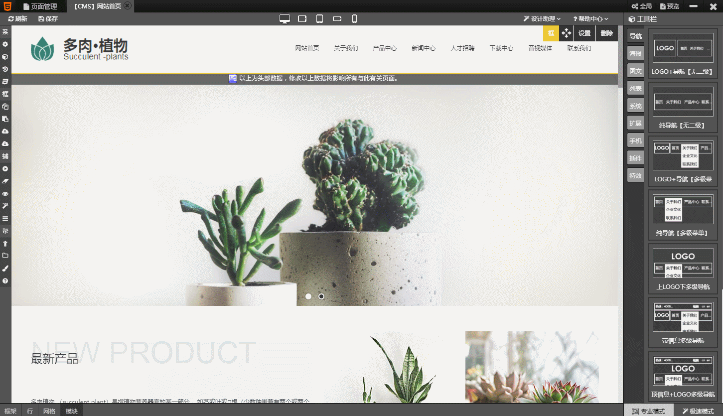 千百种模块组件,快速制作网站
